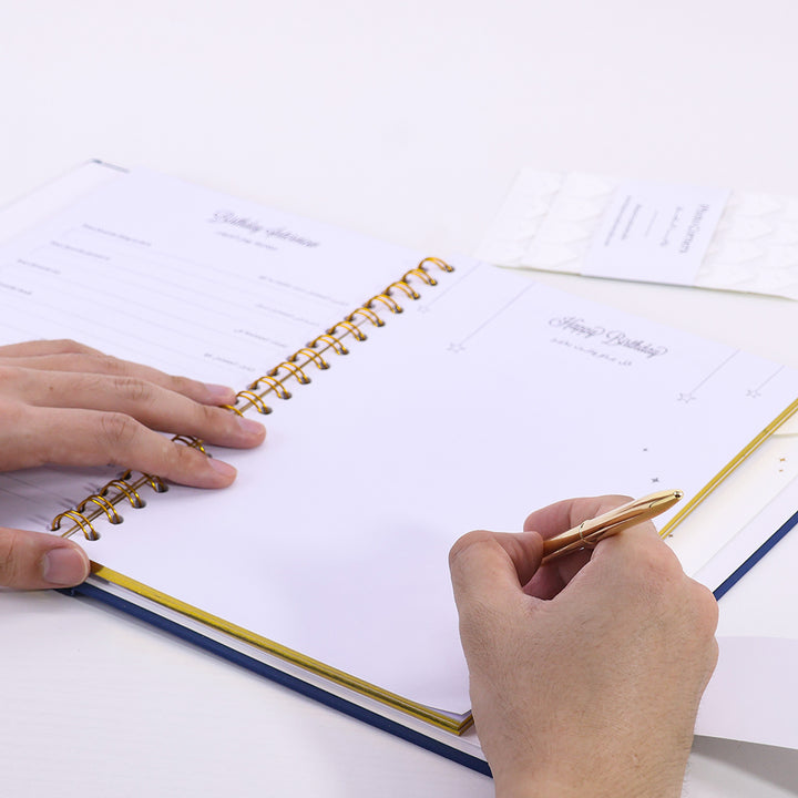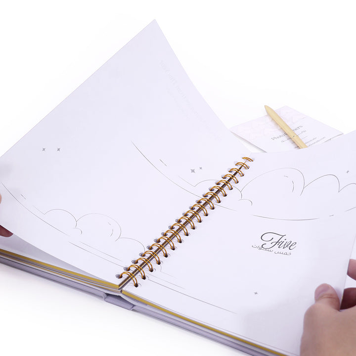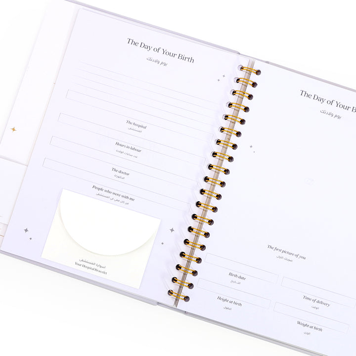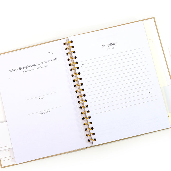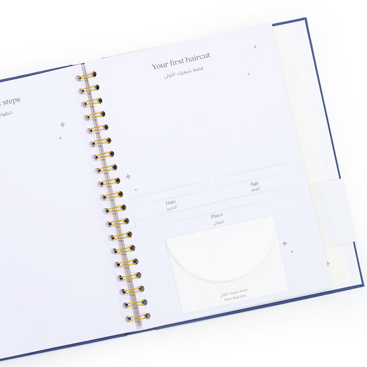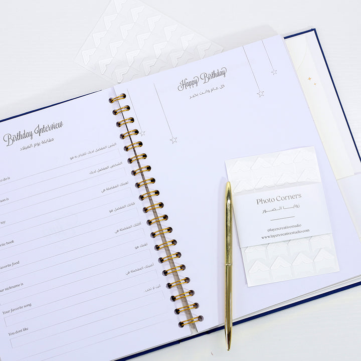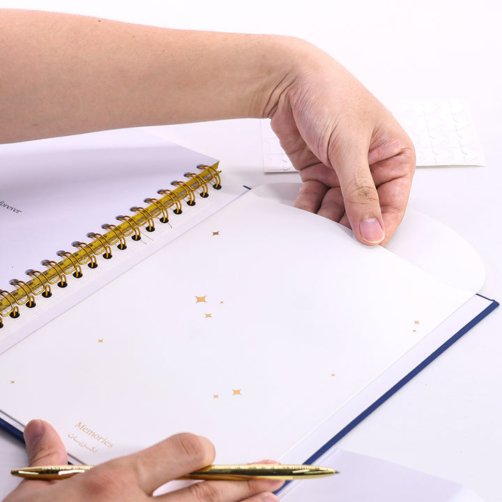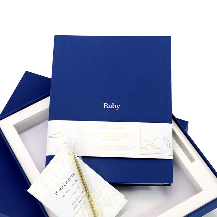 دون ذكريات طفلك في الأبوم التذكاري المصمّم بعناية وجمال، مثالي لتنظيم وحفظ أجمل ذكريات صغيرك. تدعوك كل صفحة إلى توثيق أحلى لحظات الحياة من أولى البدايات إلى أصغر المحطات—لضمان بقاء هذه الذكريات الثمينة محفوظة مدى الحياة. بفضل تصميمه الأنيق وجودته المتقنة، يصبح هذا الألبوم كنزًا من الحب والفرح، مما يجعله الهدية المثالية للآباء الجدد لتوثيق اللحظات السحرية العابرة في رحلة صغيرهم بكل محبة.