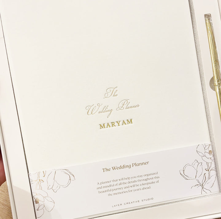 خطّطي ليومكِ المثالي بكل سهولة مع مفكرة الزفاف المصمَّم بعناية. تم ابتكار هذا الدليل للعروس الراغبة في الحفاظ على تنظيم تام دون التخلي عن اللمسة الجمالية، حيث يضم صفحات إرشادية، وقوائم جاهزة، وجداول زمنية، ومتتبعات للميزانية، وسجلات للمورّدين—كل ما تحتاجة من تفاصيل لتنظيم يومها المميز. يضفي الغلاف الفاخر، والتفاصيل الذهبية، والفواصل المرقّمة متعة على عملية التخطيط، بينما تحافظ الجيوب الواسعة على العقود وقطع القماش ومصادر الإلهام في مكان واحد وآمن. هنا يبدأ حفل أحلامكم.